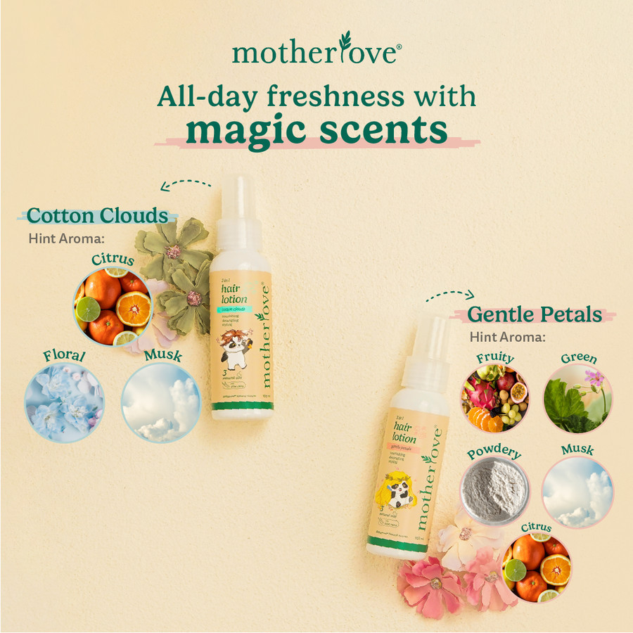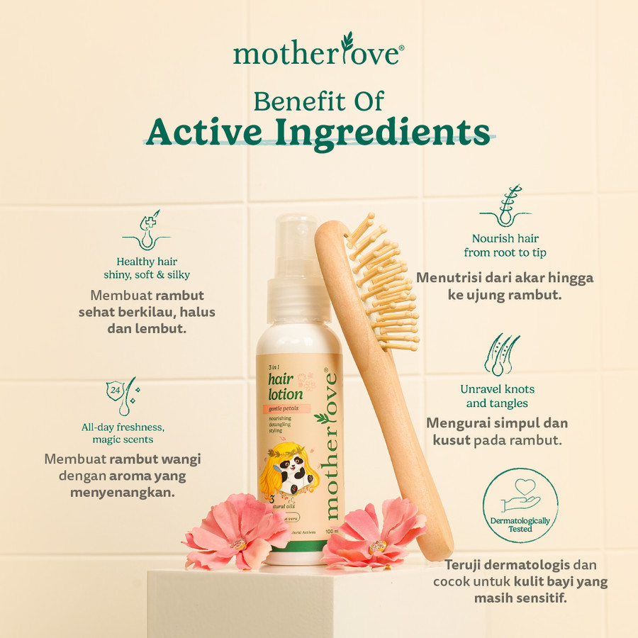 Motherlove 3 in 1 Hair Lotion Gentle Petals - Pengharum Rambut Organik - Perpaduan Fruity & Powdery