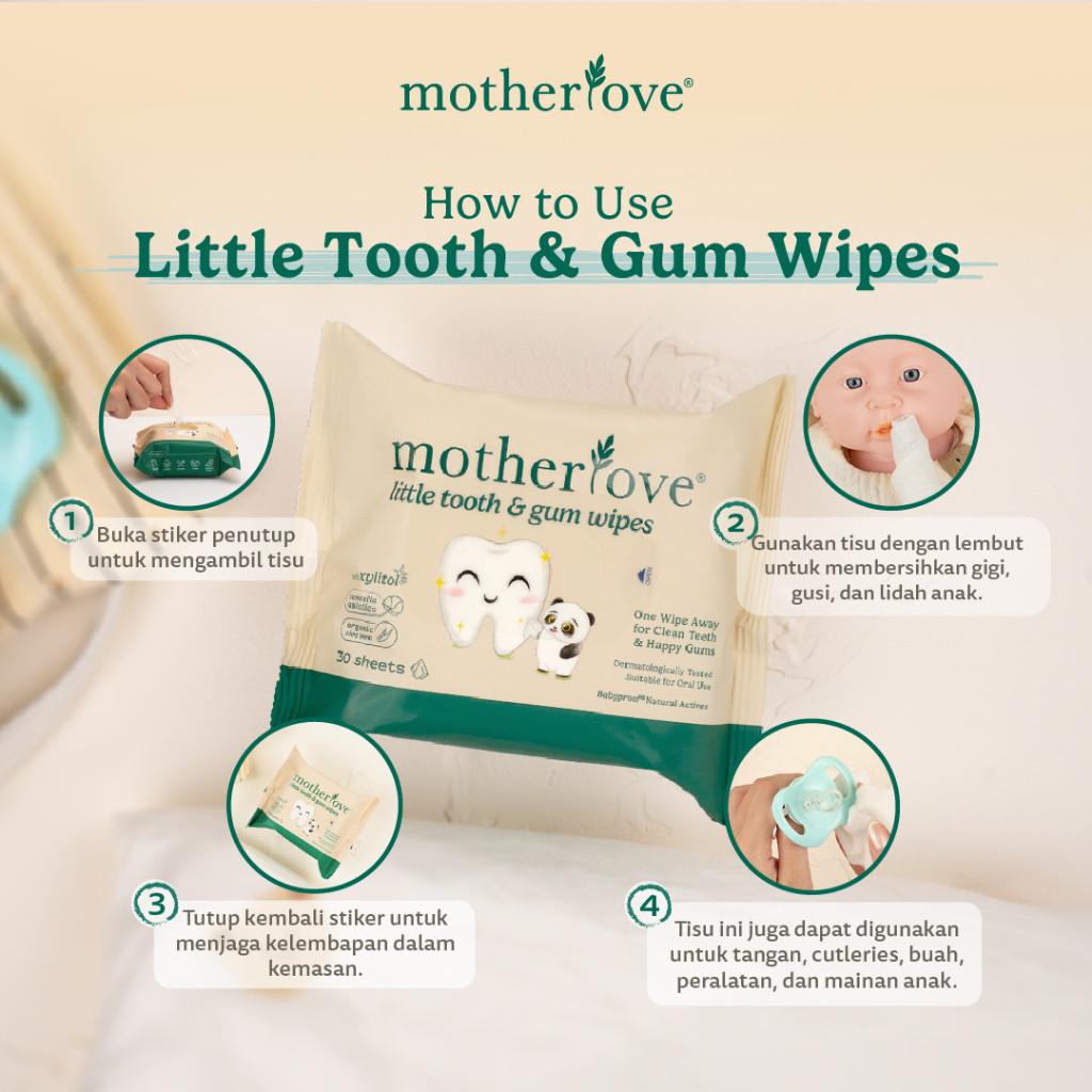 Motherlove Little Tooth & Gum Wipes 30 Sheets | Tisu Basah Pembersih Mulut, Gusi, Gigi dan Lidah Khusus Bayi - Food Grad