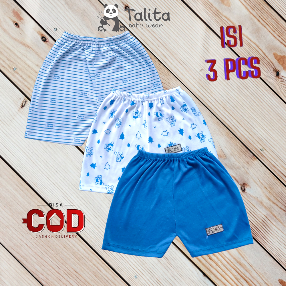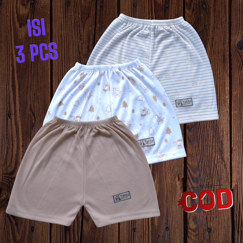 3 Pcs Celana Pendek Bayi Baru Lahir Newborn Seri Coklat/Abu/Biru/Merah
