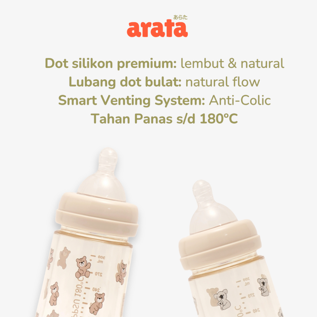 ARATA Botol Susu Bayi Dot PPSU Baby Wide Neck Feeding Bottle Anti Colic 300ml MONAKA