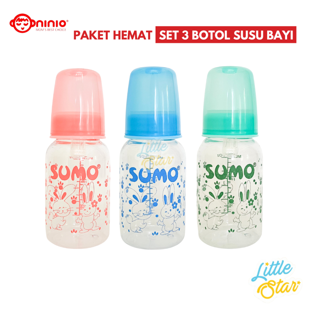 3 Pcs Botol Dot Susu Bayi Sumo Ninio Feeding Baby Bottle Nipple Standard Neck Tempat Minum Anak