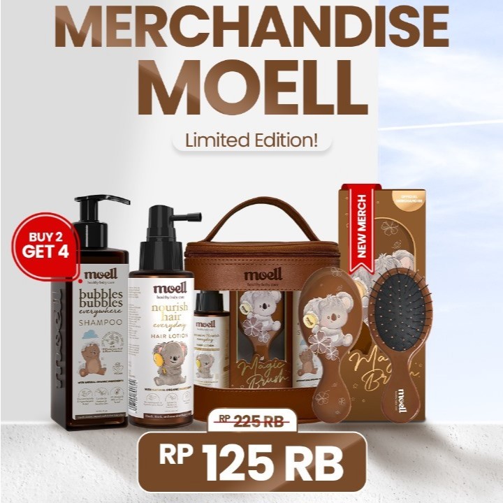 Bundle Moell Baby Hair lotion Botol 100 ml + Moell Baby Shampoo Botol 185 ml + Sisir Pouch