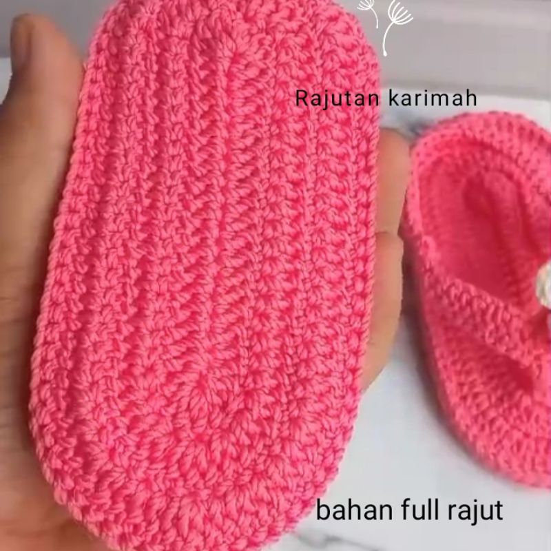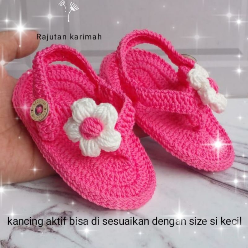 sendal bayi perempuan rajut tangan cantik lucu hias bunga puff
