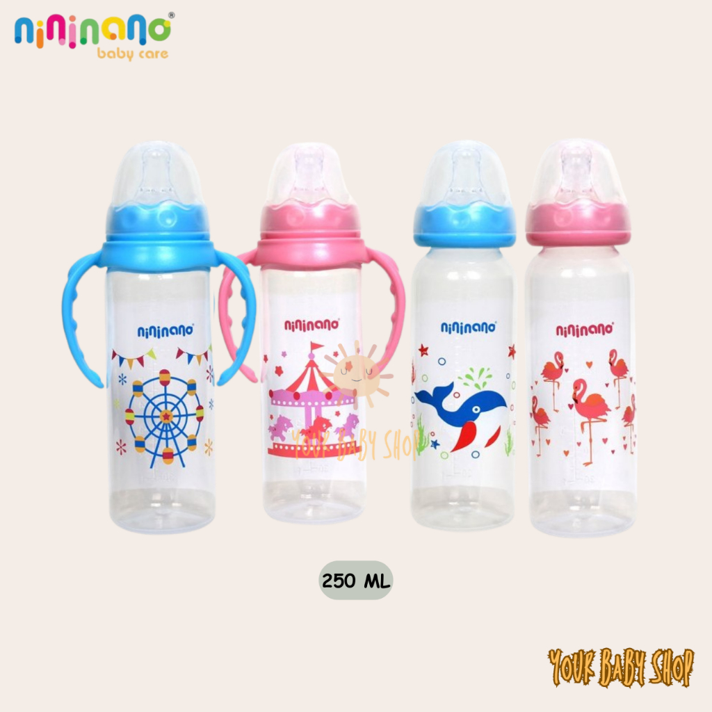 Botol Dot Susu Bayi Nini Handle Feeding Baby Bottle Reguler Nipple Bulat Slim Neck BPA Free 125ml dan 250ml