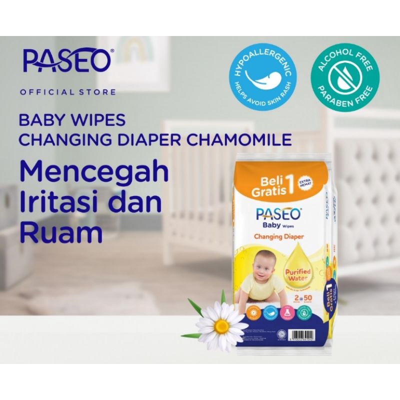 Tissue tisu basah paseo baby wipes 50 sheets ( BELI 1 GRATIS 1)