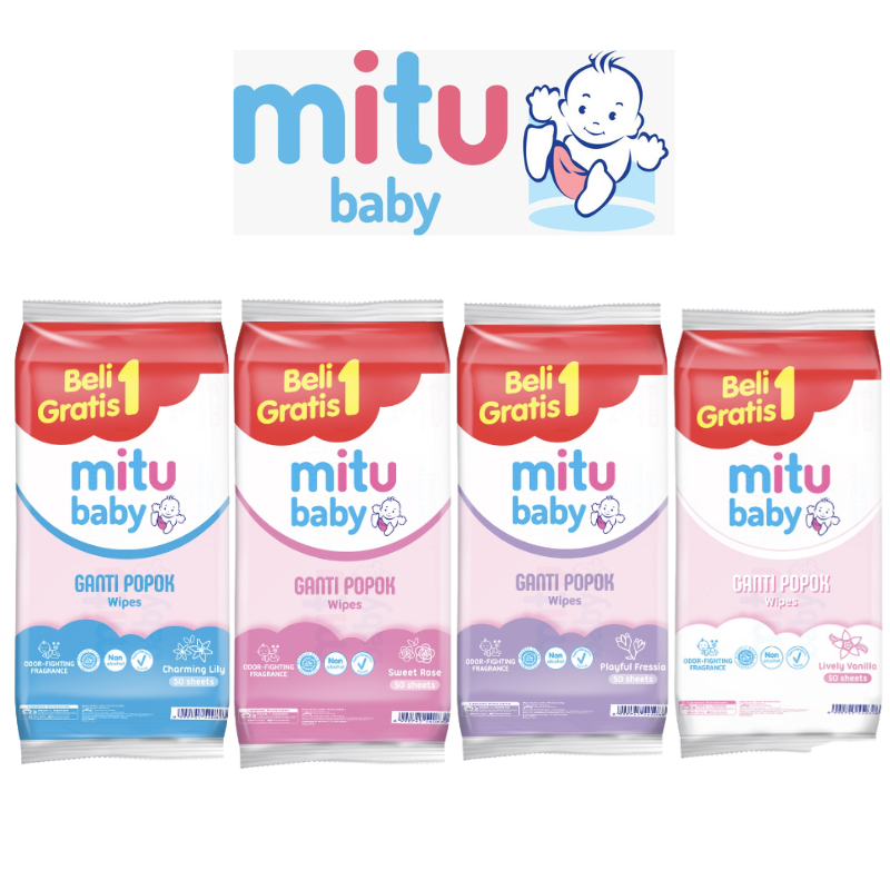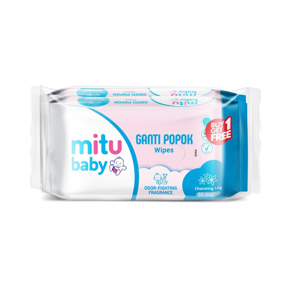 Mitu Baby Tissue Basah Ganti Popok 50'S Beli 1 Gratis 1 [2 Packs] - Tisu Basah Bayi