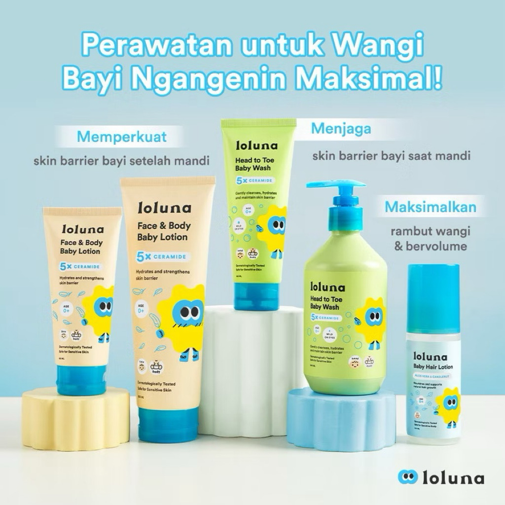 Loluna Head to Toe Wash 100ml dan 300ml | Face & Body Lotion 80ml/Sabun Sampo Lotion Perawatan Kulit Bayi Newborn dan An