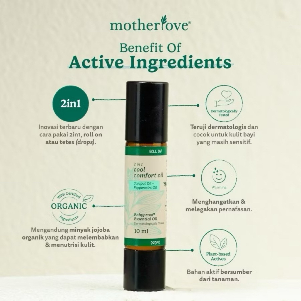 Motherlove 2in1 Babyproof Essential Oil / Menyejukan & Menenangkan / Melegakan Pernapasan / Eazy Baby Oil Cool Comfort O