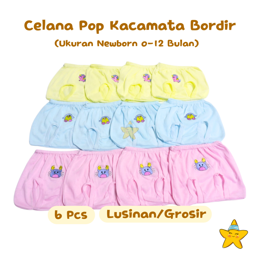 HBK 6 Pcs Celana Pop Bayi Model Kacamata Bordir Perlengkapan Newborn Baby Baru Lahir 1/2 Lusin