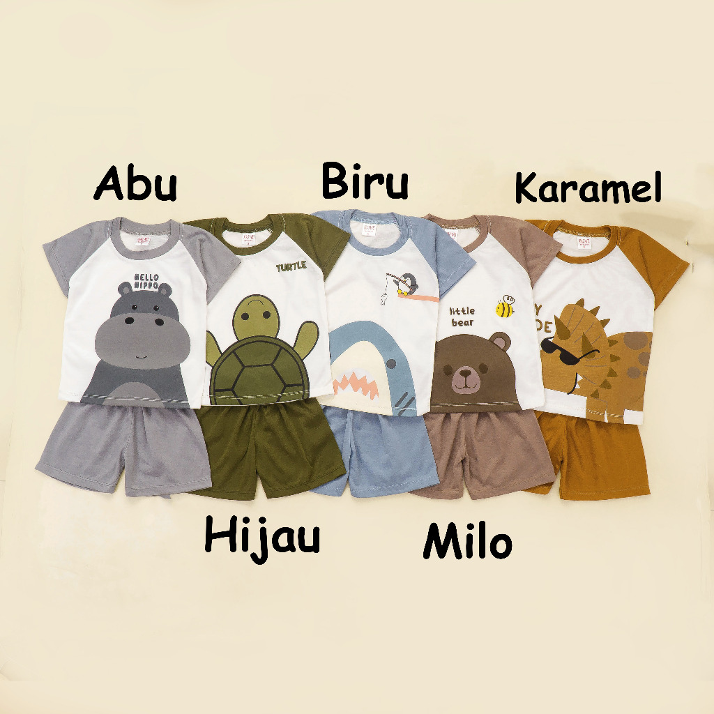 (ISI 5 SETEL) Setelan Anak & Bayi Laki Laki Raglan Animal Earthtone Series/ Baju Anak Laki Laki / Baju Bayi / Setelan Ba