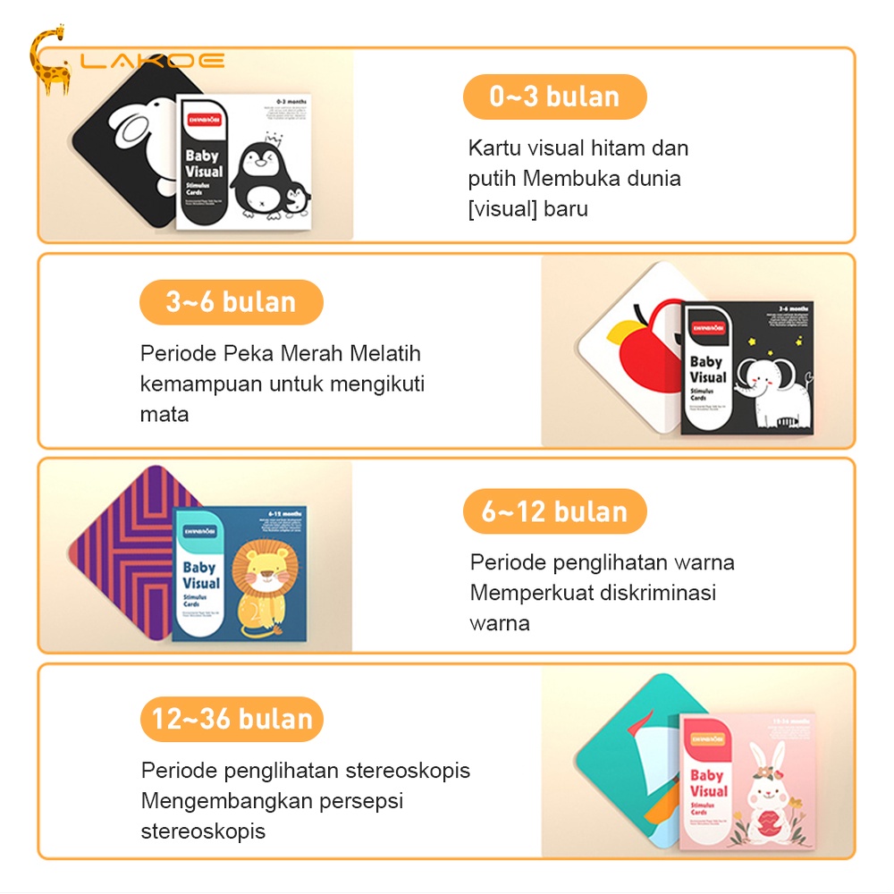 LAKOEOFFICIALMALL Mainan Kartu Stimulasi Visual Bayi Pendidikan Dini Montessori Flash Card Hitam Putih Dan Kontras Tingg