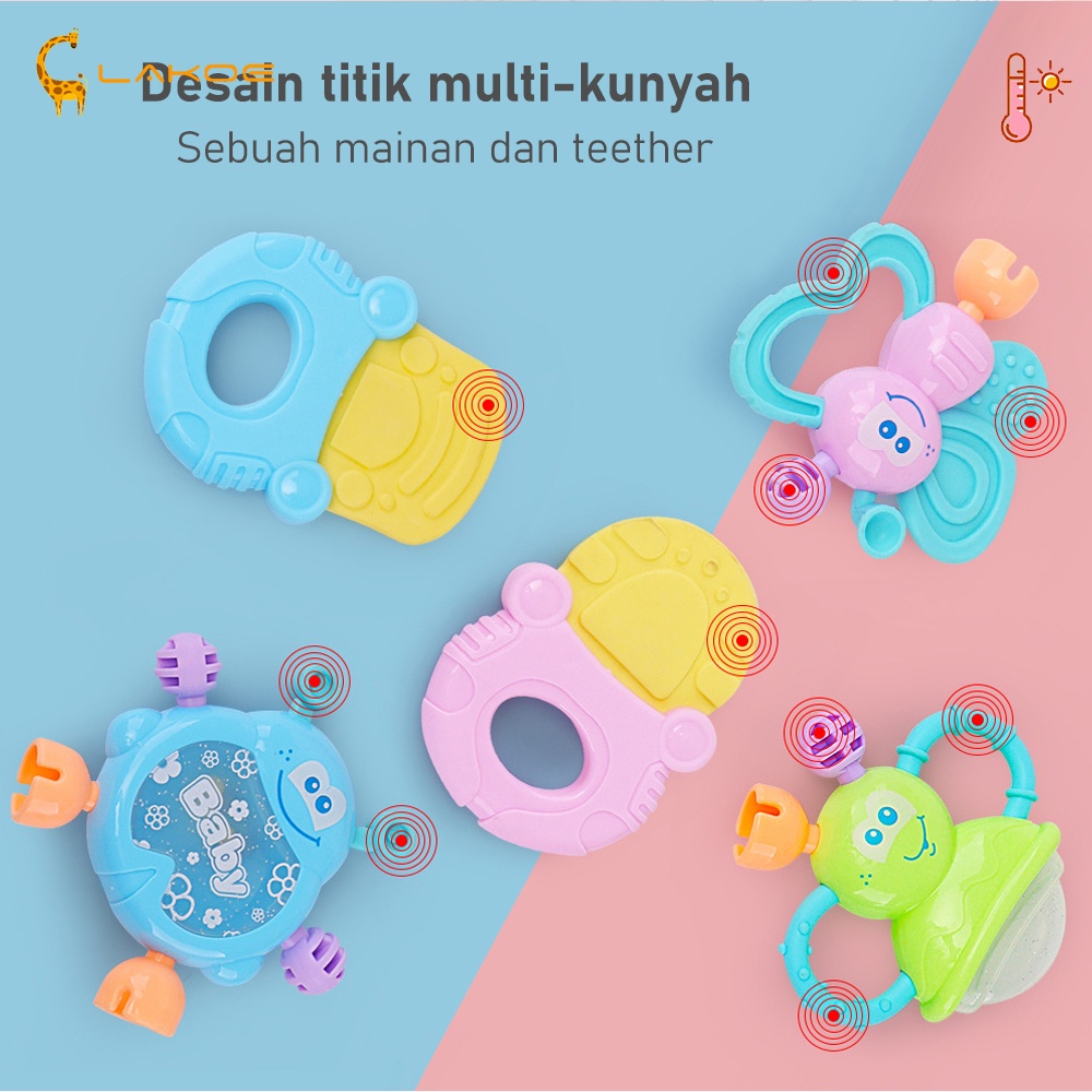 LAKOEOFFICIALMALL Mainan Kerincingan Bayi Set Mainan Gigitan Rattle Teether Bayi