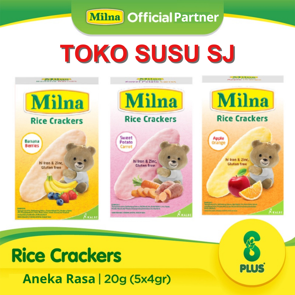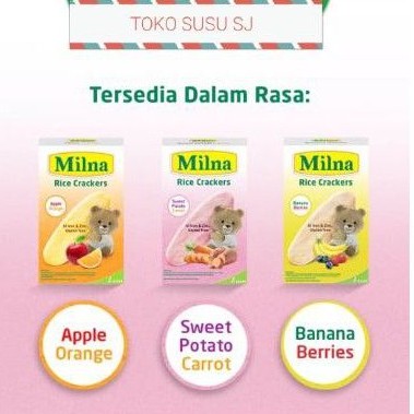 MILNA RICE CRACKERS BANANA BERRIES APPLE ORANGE SWEET POTATO CARROT 5 X 4GR