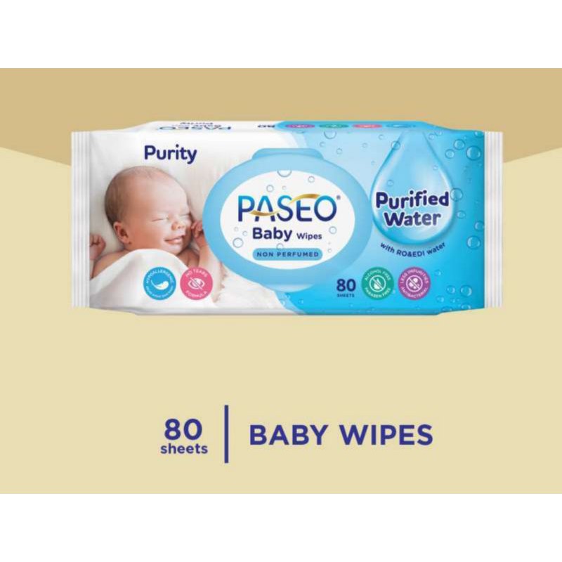 1 PCS Paseo Purity Baby Wipes Non Perfumed 80s Tisu Tisue Tissue Basah Bayi purified water 80 s