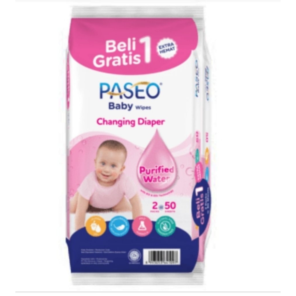 Tisu Tissue Basah | PASEO | Baby Wipes | Buy 1 Get 1 | 2 x 50 Sheets | Original