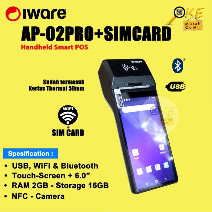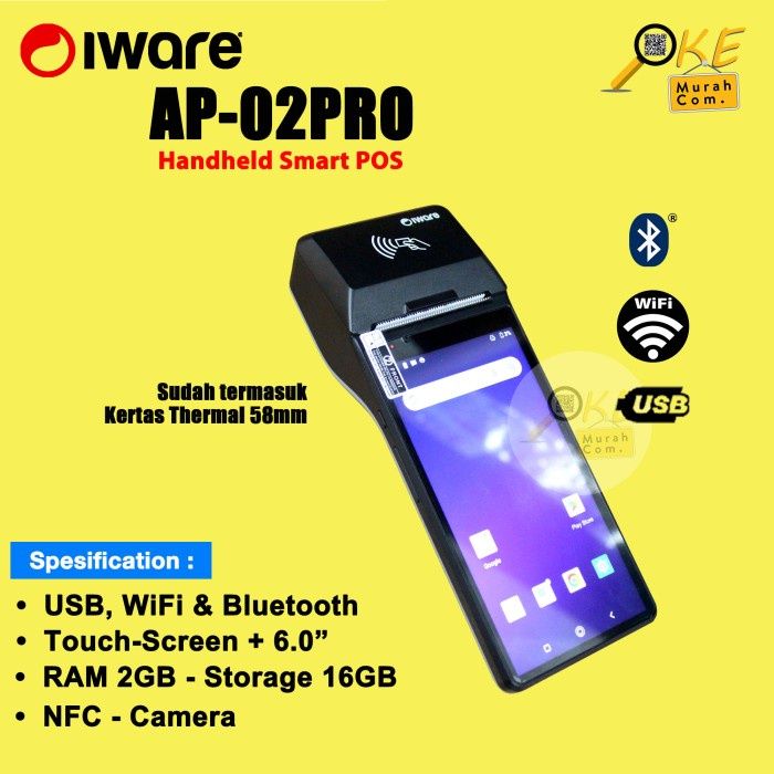 Mesin Kasir Portable Iware AP-02 PRO / AP02 - POS Android Mobile 2GB+16GB NFC