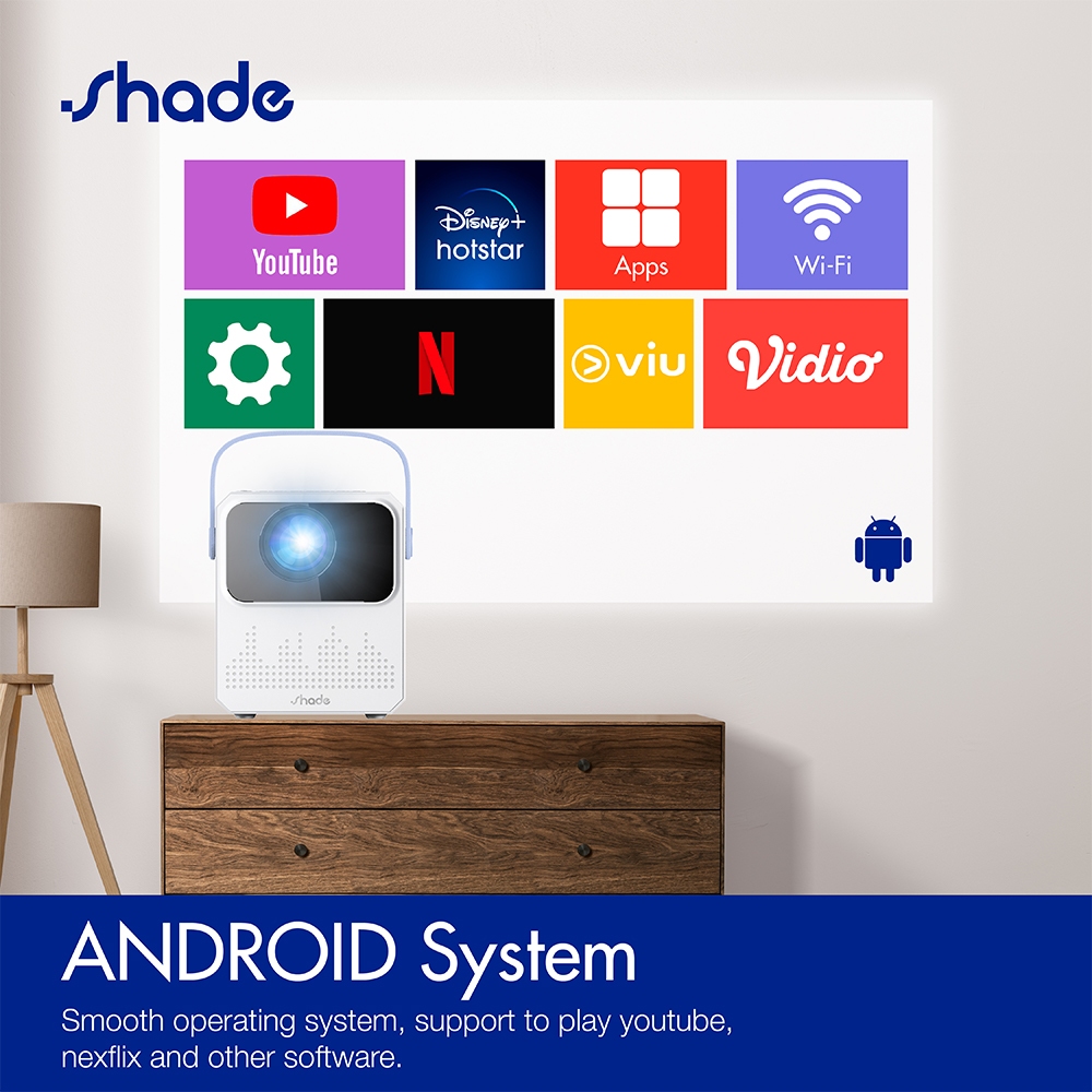SHADE Android Proyektor TV T2mini 6000 Lumen 4K HD Bluetooth Smart Projector / proyektor android / iphone 11 pro max