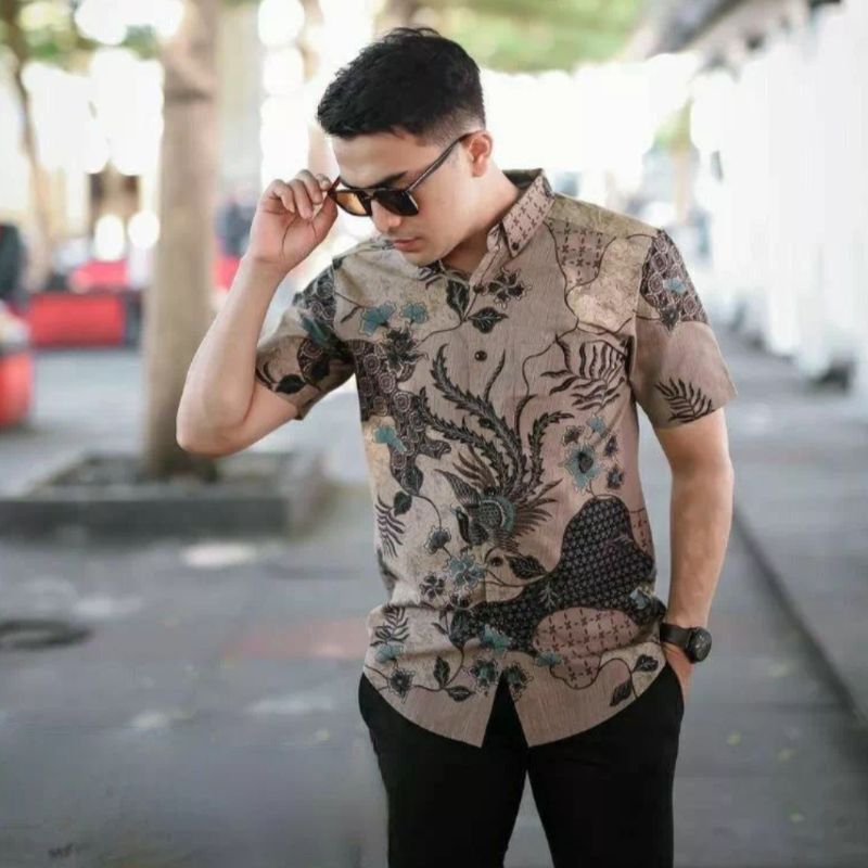 New Arrival Distro Kemeja Baju Batik Pria LENGAN PENDEK Pria Cowo Cowok Bordir Sogan HRB026 Modern