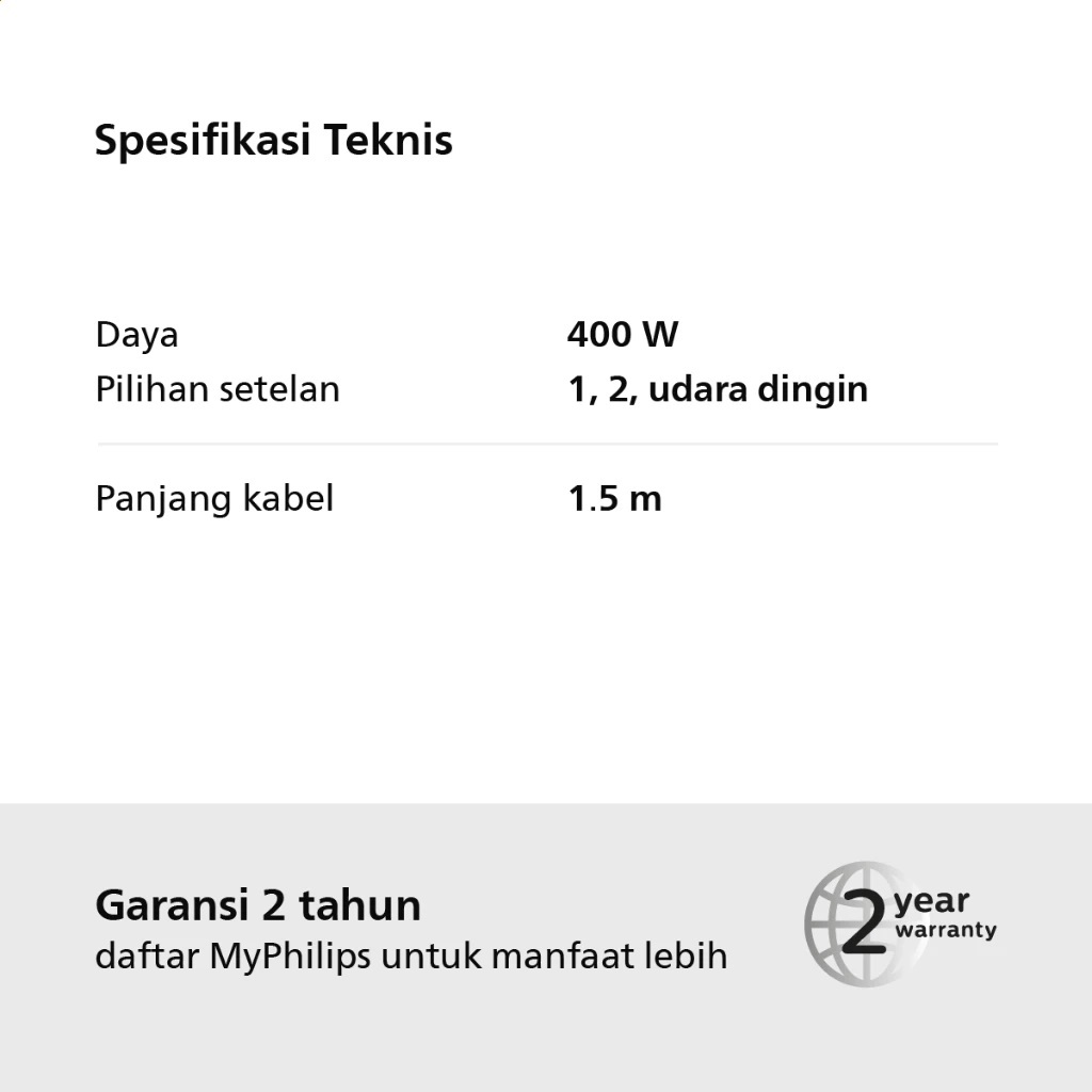 PHILIPS HP8108-02 Drycare Hair Dryer - Pengering Rambut Garansi Resmi HP 8108