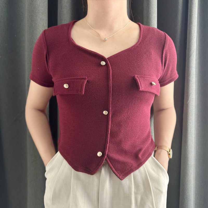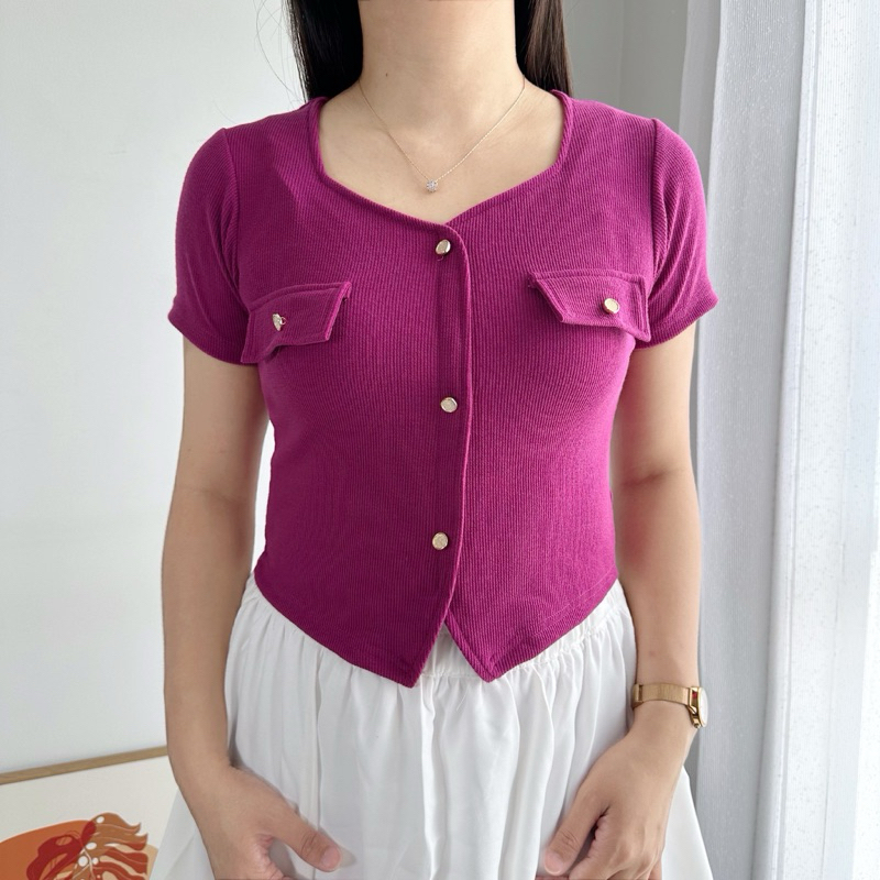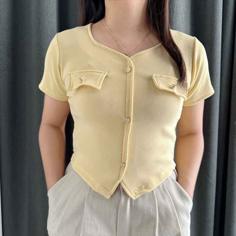 ENMEI Gebby Top 928 - Crop Top Wanita - Atasan Blouse Wanita - Kaos Korean Crop Bahan Knit