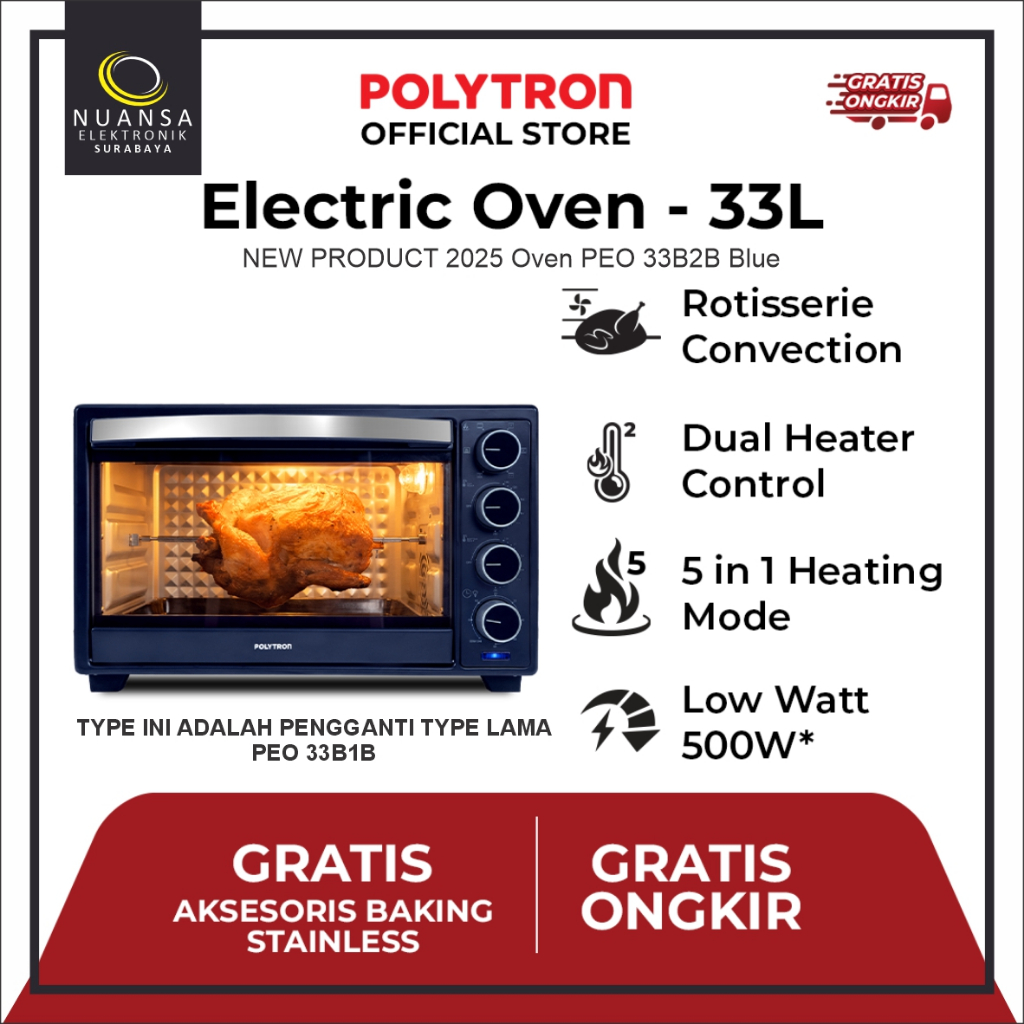POLYTRON Oven Listrik PEO 33B2B 33B2W / PEO-33B2B PEO-33B2W Kitchenmate 33 Liter Pengganti 33B1B