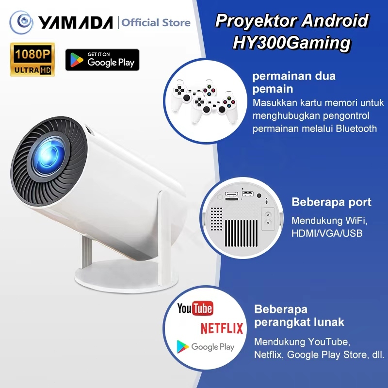 Proyektor HY300 Smart Projector 180 ANSI Lumens HD 1080P Bluetooth 5 1G+8G / proyektor android / iphone 11 pro max