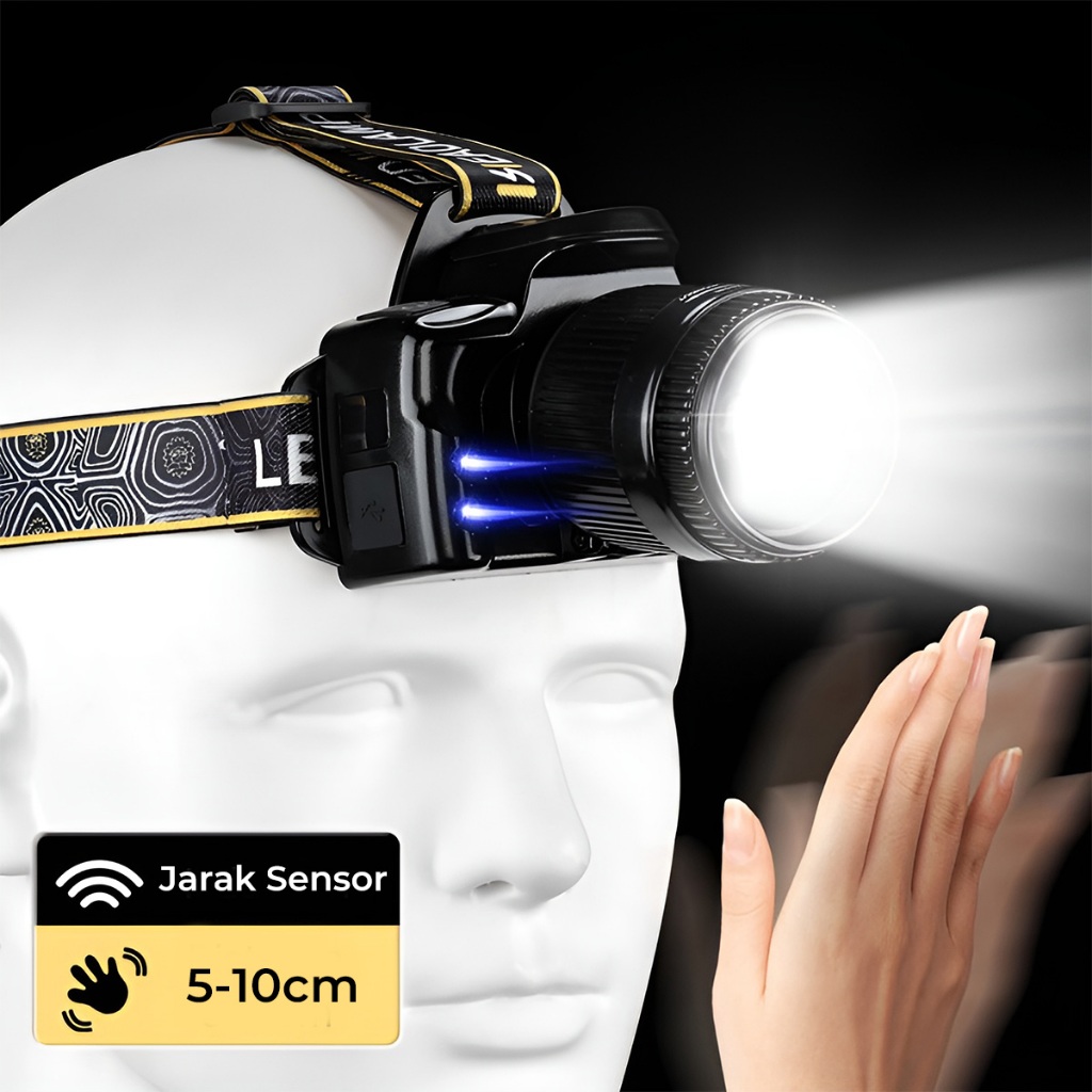 H2S Senter Kepala LED Laser Zoom Rotary 2 Baterai 50w 6 Mode Waterproof IPX6 HS-U8