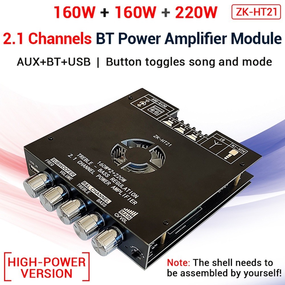 Wuzhi Audio | ZK-HT21 Bluetooth digital power amplifier modul 2.1 channel 【TDA7498E】 subwoofer nada tinggi dan rendah 16