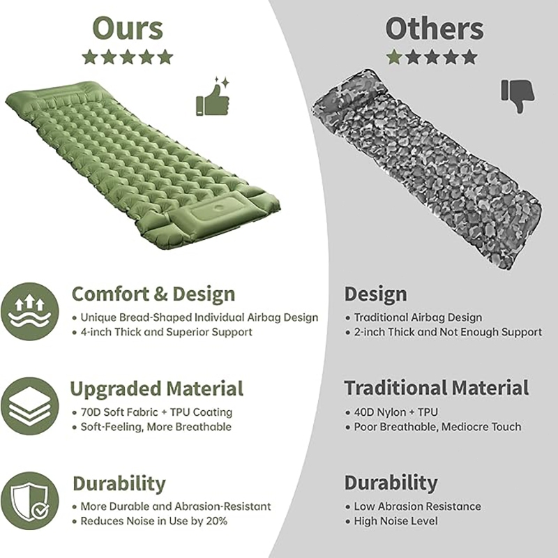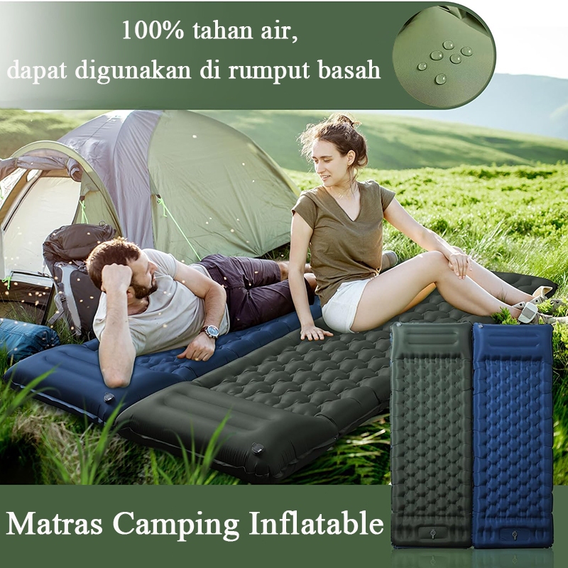 Inflatable Bed Mat Inflatable Berkemah Tempat Tidur Terbuka Yang Bisa Didorong 195 x 60cm Matras Camping Inflatable Berk
