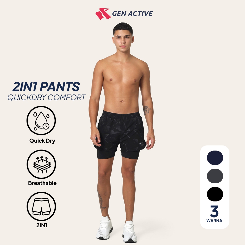 Gen Active Celana Olahraga Pria Baselayer Celana Short Pants Running Cowok Sport Gym Fitness Padel