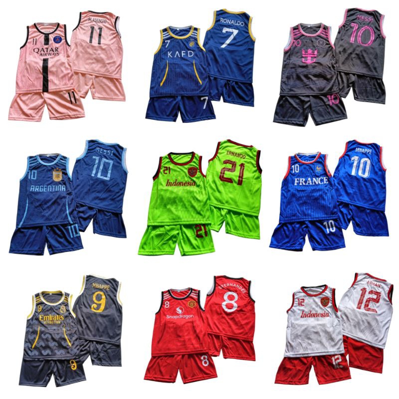 PAKET HEMAT ISI 3 DAN 5 PCS SETELAN BAJU BOLA SINGLET ANAK KAOS SINGLET OLAHRAGA UMUR 1 SAMPAI 10 TAHUN