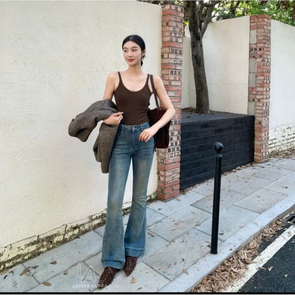 Cutbray jeans wanita - Celana Cutbray Highwaist Warna Light blue Retro Stretchy terbaru