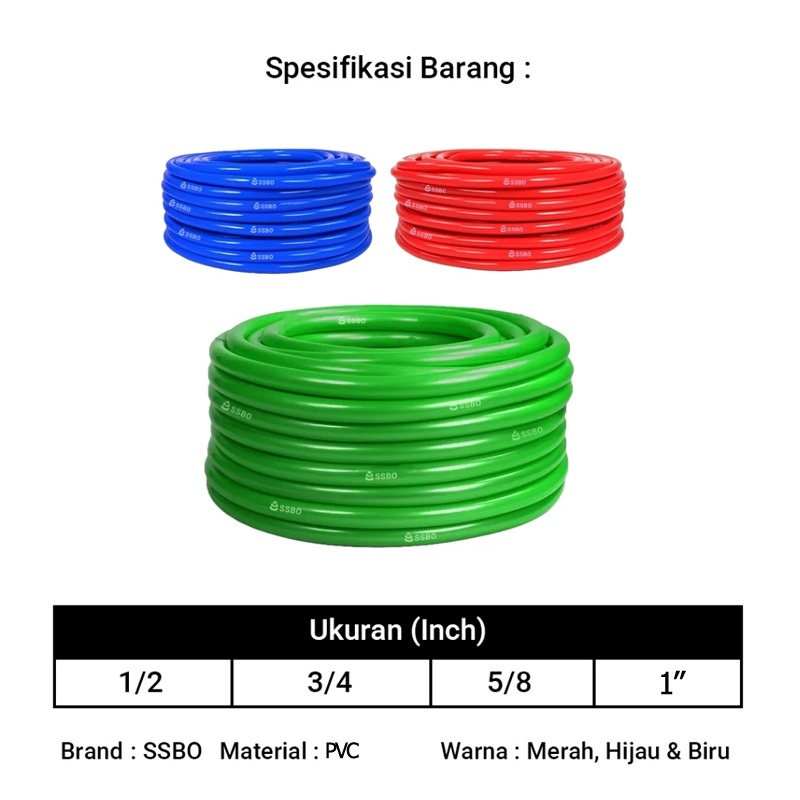 SSBO Selang Air Elastis 100 Meter 1 ROL 1/2 5/8 3/4 Inch / Selang Taman Kebun 1 Rol Cuci Motor Mobil