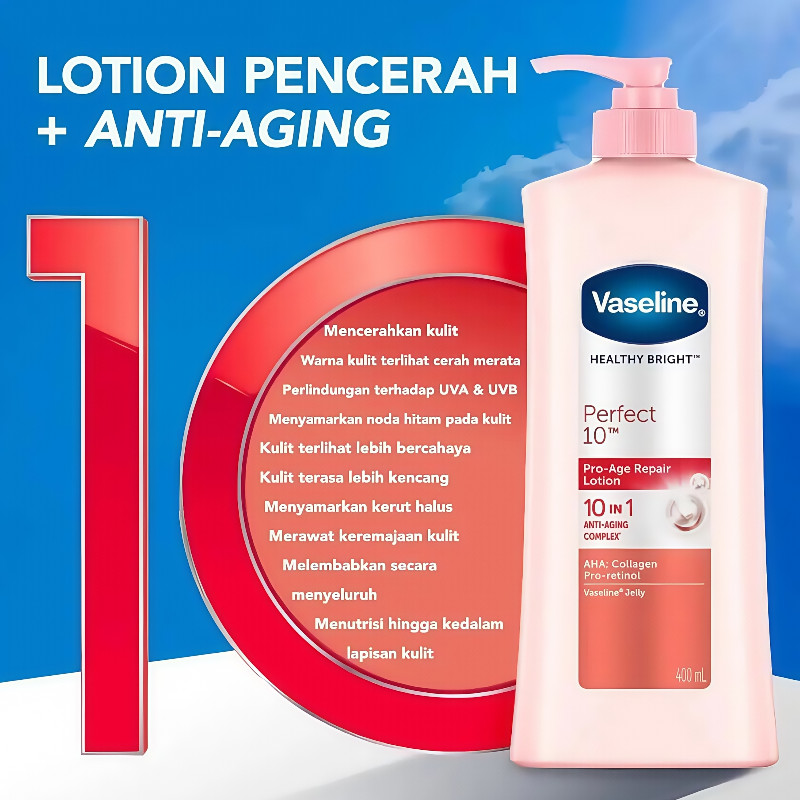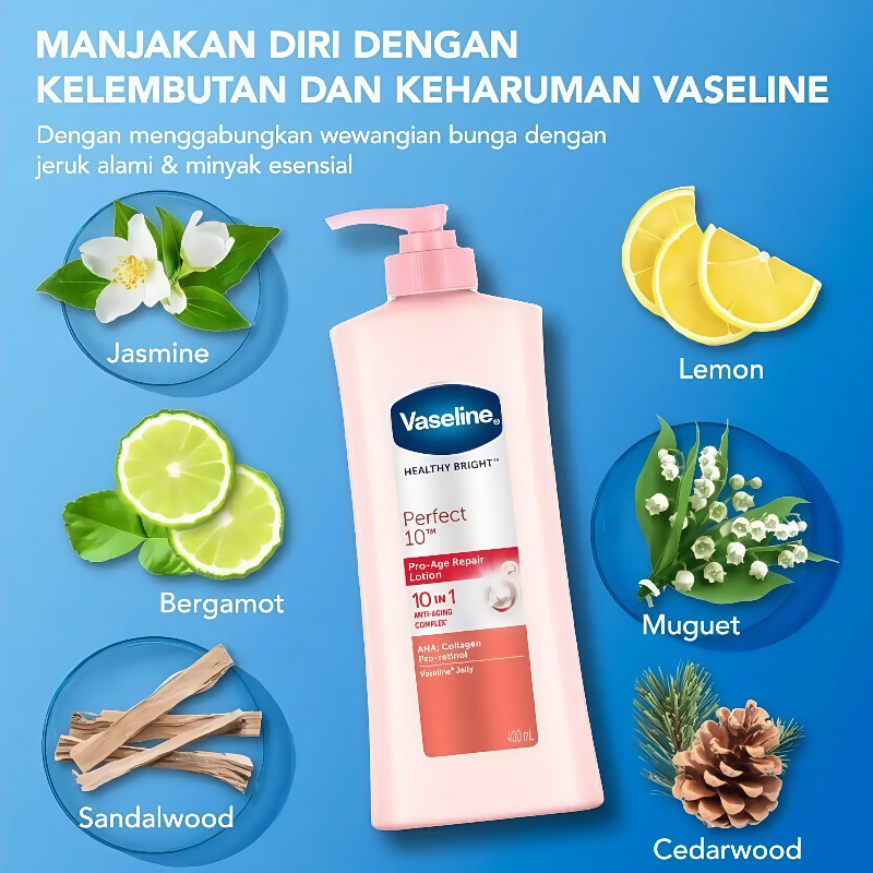 Vaseline Healthy White Bright UV Lightening Whitening Hand Body Lotion Perfect 10 400 ml