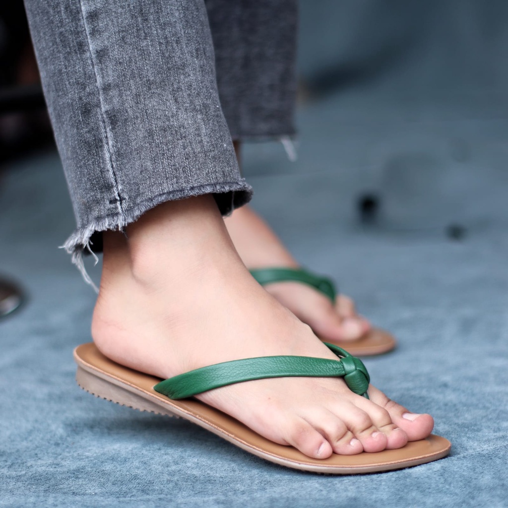 Sandal Sendal Jepit Kulit Asli Slop Teplek Anti Slip Original Premium Gaya Wanita Cewek Cewe