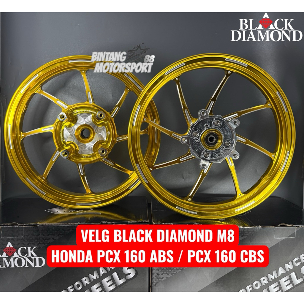VELG BLACK DIAM0ND ORIGINAL M8 FOR HONDA PCX 160 ABS-CBS DEPAN 185x14 BELAKANG 215X14 PELEK BEST QUALITY