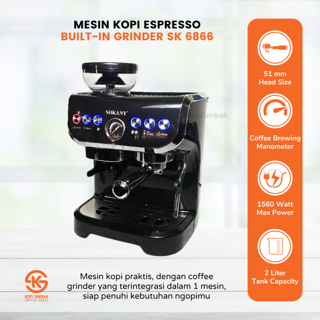 Mesin Kopi Espresso Built-in Grinder SK6866 Alat Seduh Pembuat Kopi Expreso Coffee Maker SK 6866