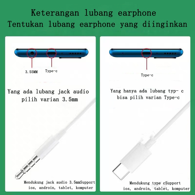 Earphone Headset Gaming Superbass Stereo+HD Hi-Fi Mic Jack 3.5mm Type C In-Ear