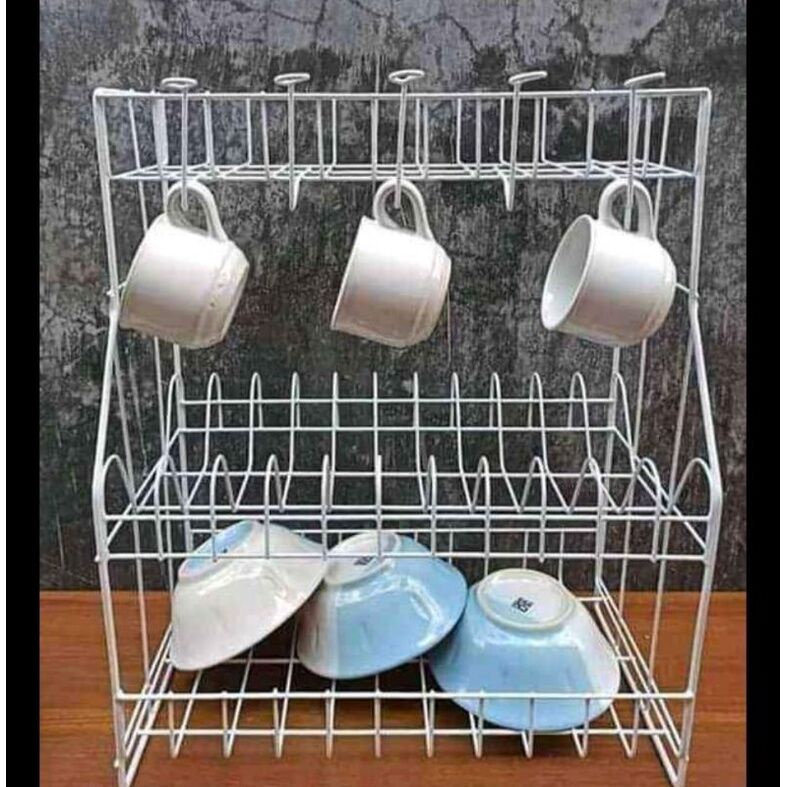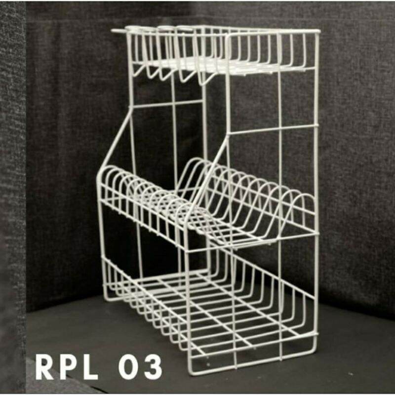 Rak piring besi wastafel susun 3 + gelas ( RPL 03 & RPK 03 )