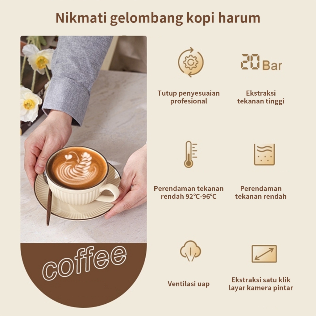 Elegan Home Espresso Machine, Mesin Kopi Espresso Mini, Espresso Otomatis Murah Alat Bikin Kopi Ala Cafe Alat Pembuat Kopi Jadul Espresso Coffee Maker Satu Set
