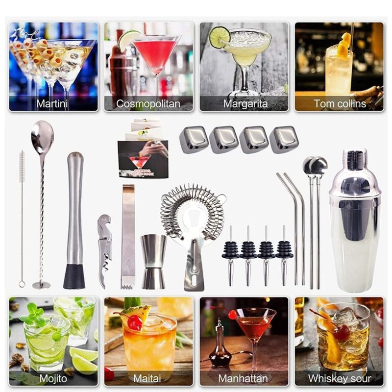 Paket Lengkap Barista Bartender Set 25 In 1 Alat Shaker Minuman Set Premium Cocktail Boston Shaker Set