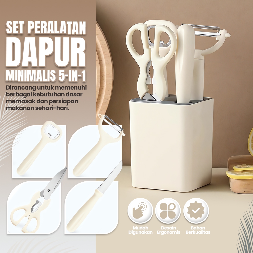 Set Peralatan Dapur 5 in 1 - Alat Kupas, Gunting, Pisau, Parutan, Stainless Steel
