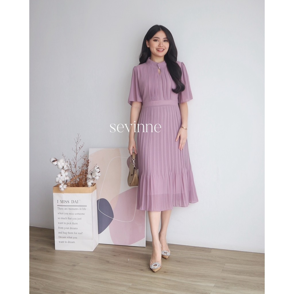 Sevinneclothing - ELEANOR Dress - Dress Natal - Baju Natal - Dress Korea - Midi Dress - Dress Bumil - Dress Plisket - Dr