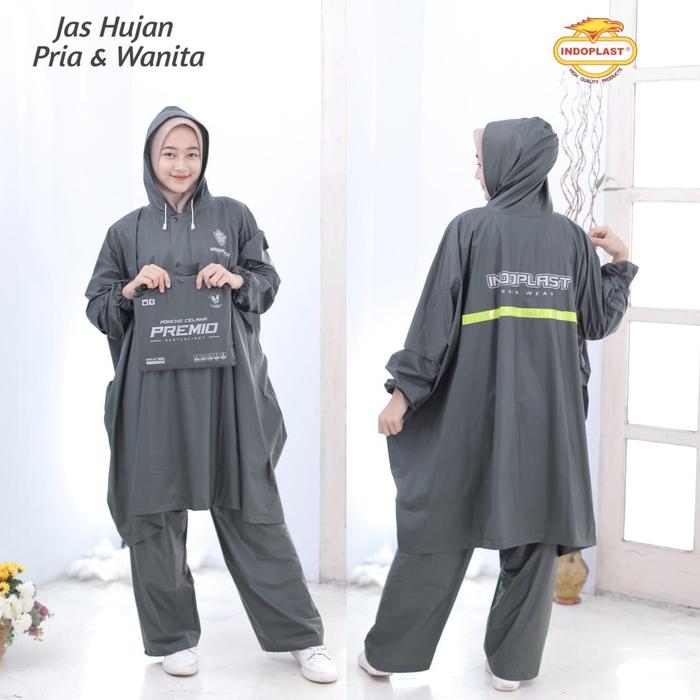 Terlaris ISTANA Jas Hujan Stelan Ponco Lengan Celana PREMIO Brand Indoplast | Original - Biru Elegan