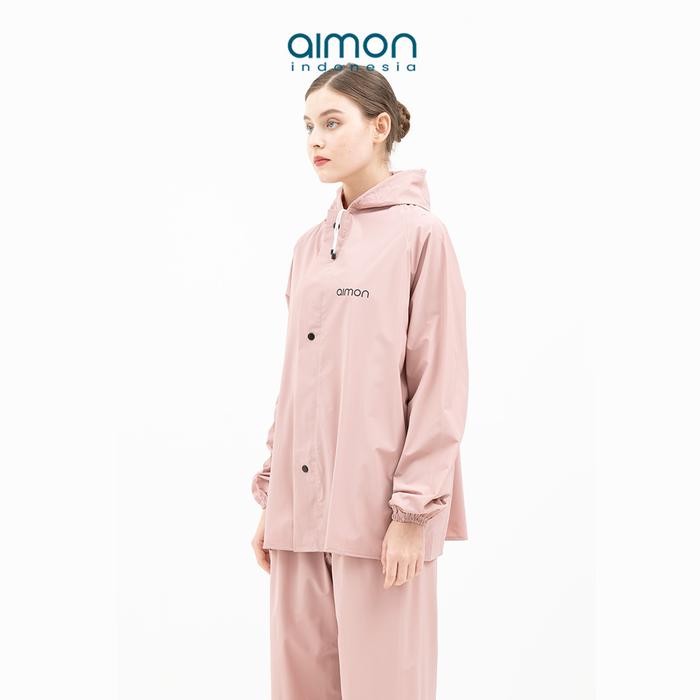 Murah AIMON Jas Hujan Setelan Dewasa Mantel Anti Air PVC 0.25 Tebal Elastis - Dusty Rose ALL SIZE BB 40KG-80KG Keren