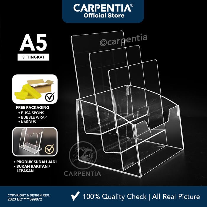 Carpentia | Tempat Brosur Akrilik 3 Tingkat uk. A5 - Flyer Tipe E 3 Susun