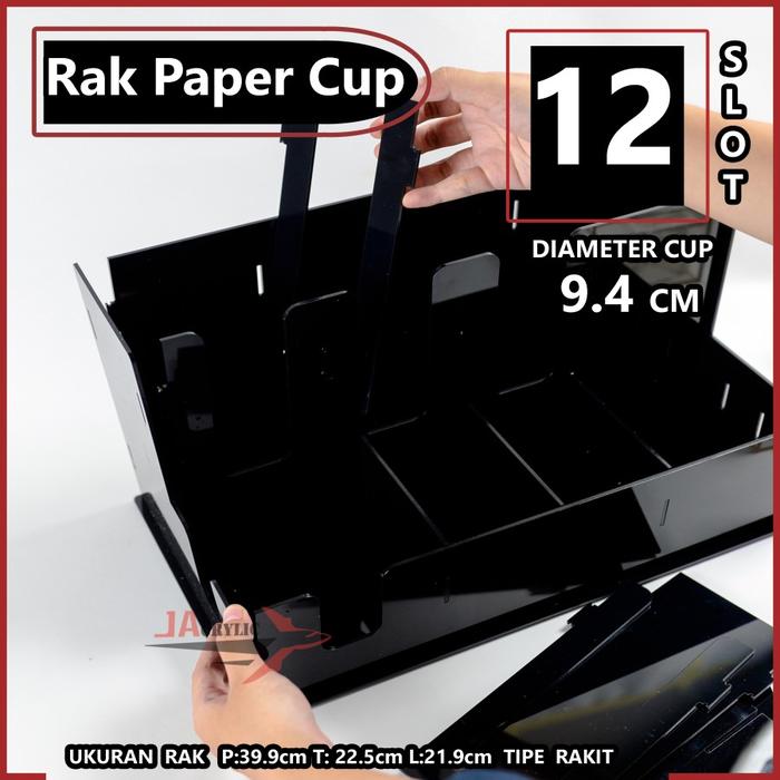 Rak Paper Cup Akrilik Complete / Organizer Paper Cup 12 Slot Acrylic - 12 Slot 3mm Hitam