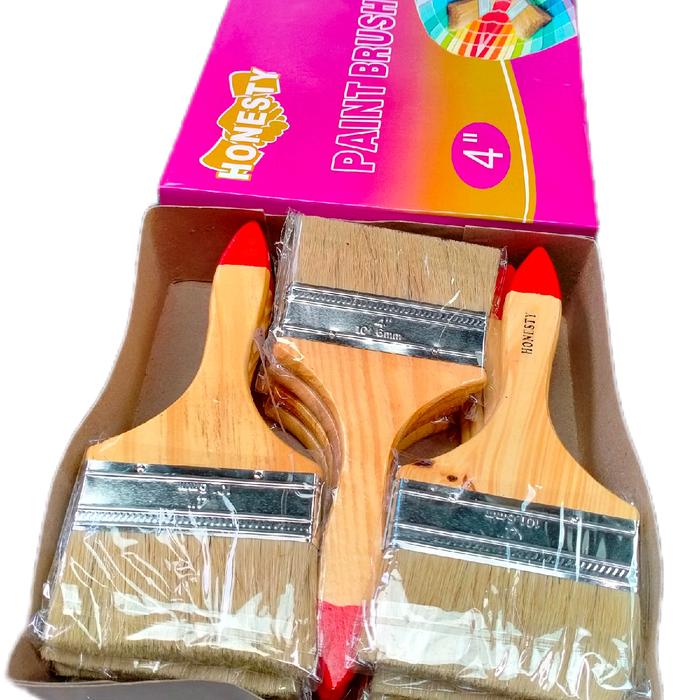 1 lusin kuas cat 4" gagang kayu 4 inchi 1box isi 12 pcs grosir kuas cet 4 inchi Paint