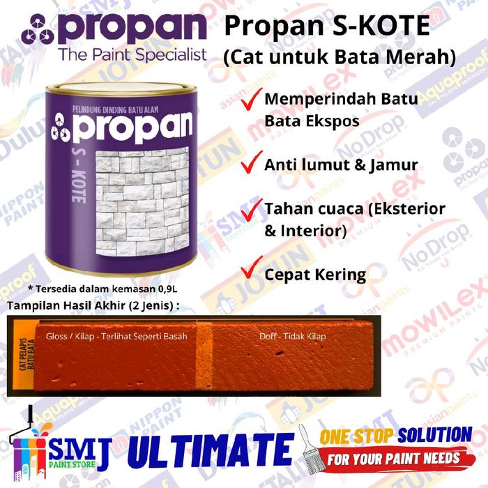 Cat Pelapis Batu Alam PROPAN STONEKOTE/S-KOTE Warna MERAH BATA 09Liter - Gloss