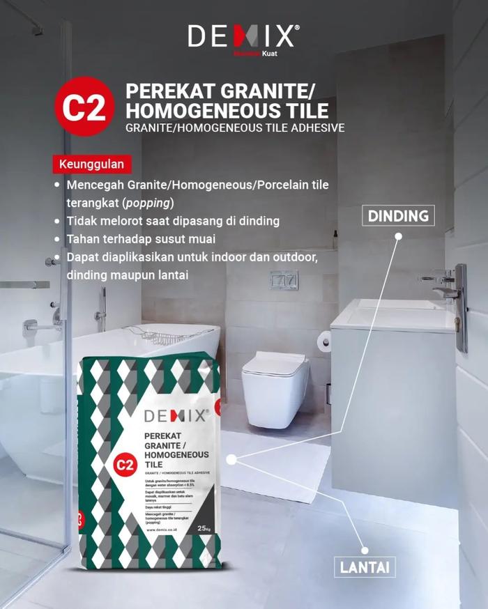 PROMO DEMIX C2 PEREKAT LEM GRANITE TILE HOMOGENIUS MARMER 25KG FREE DEMIX D1 1 KG